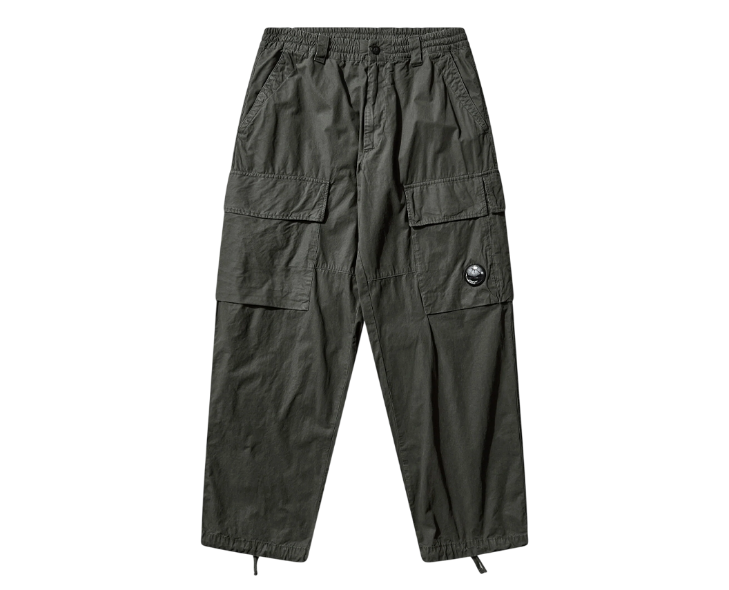 Карго-штани C.P. Company Microreps Boxy у кольорі Dark Shadow виконані з бавовняного репсу з подвійною обробкою через діамантові або карбонові циліндри для міцності та текстури.