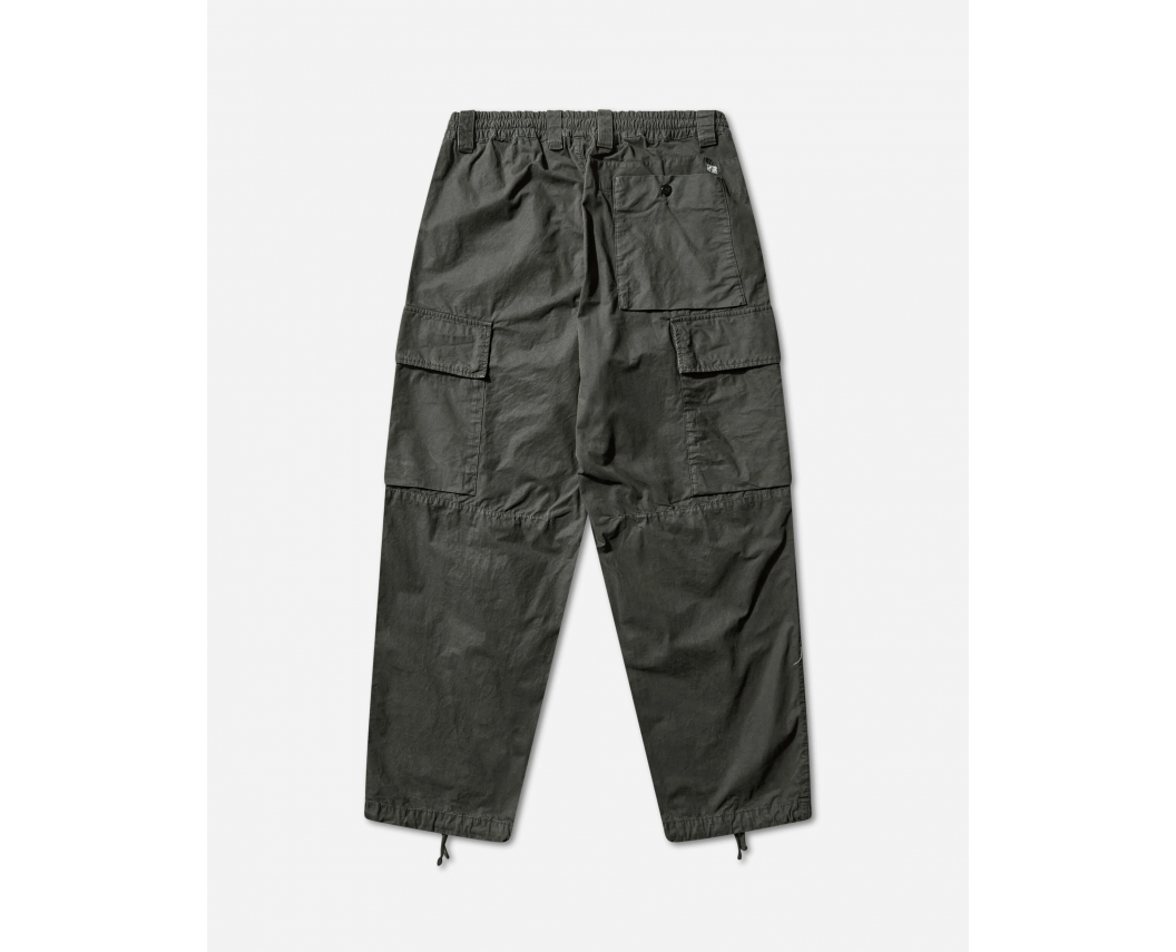 Задні кишені з клапаном на кнопках доповнені нашивкою з логотипом, а низ штанин регулюється шнурком. Модель пофарбована після виготовлення (garment dyed) і має вільний boxy крій для сучасного силуету.
