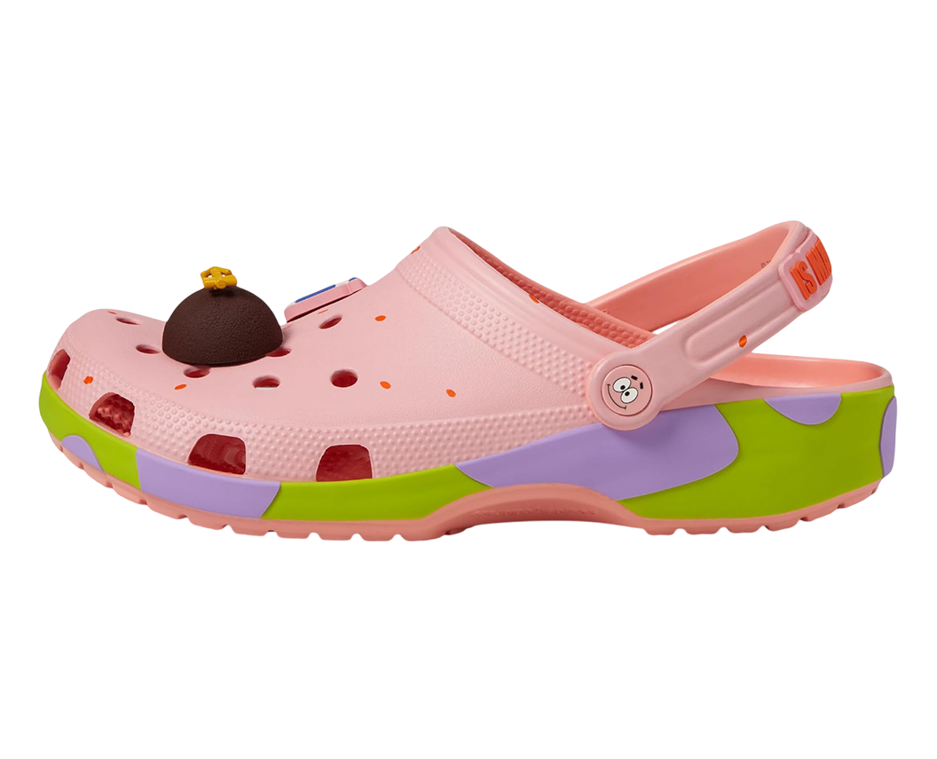 Crocs™ Spongebob Squarepants Classic Clogs — легкі та зручні сабо, які легко надягати й знімати. Яскраві мотиви Спонджбоба додають веселого та грайливого стилю, а поворотні ремінці на п’яті забезпечують надійну фіксацію.