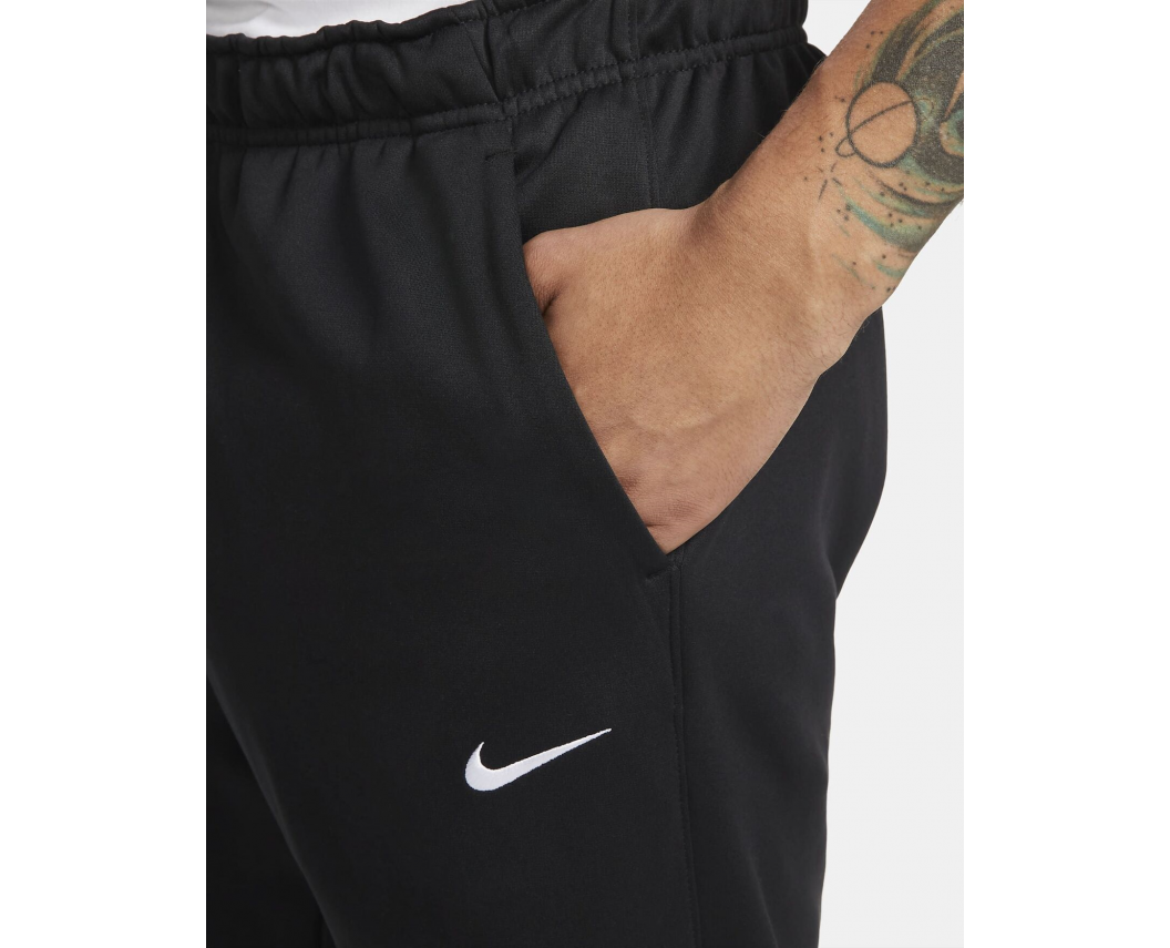 Невимушена, злегка звужена посадка залишає достатньо простору для розтяжки, присідань і активних рухів без обмеження амплітуди. Модель має бічні кишені та кишеню на блискавці ззаду на правому стегні для зручного зберігання дрібниць. Еластичний пояс із внутрішньою графікою Nike та внутрішнім шнурком із фіксованими кінцями дозволяє індивідуально регулювати посадку, а еластичні манжети додають комфорту.
