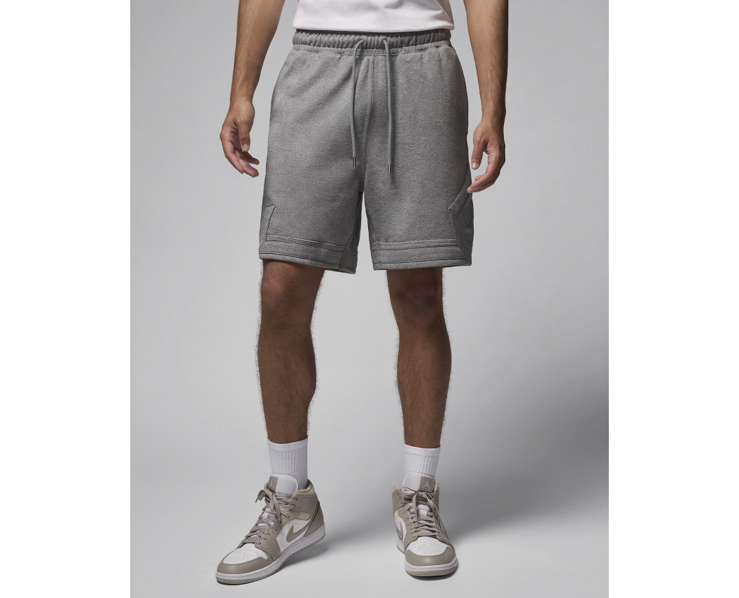 Універсальний сірий колір легко комбінується з іншим одягом, а фірмові деталі Jordan — діамантоподібні елементи та логотип Jumpman — підкреслюють спортивний характер і впізнаваний дизайн. Ергономічний крій та еластичний пояс із внутрішнім шнурком гарантують комфортну посадку й свободу рухів.