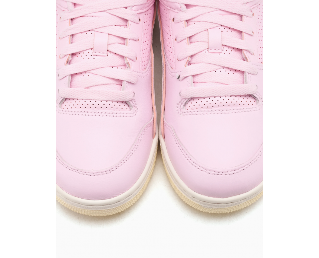 Air Jordan Flight Court GS у ретро-стилі виконані в чистій та стриманій кольоровій гамі «Pink Foam / Muslin», що підкреслює розслаблений лайфстайл-дизайн моделі. Кросівки виготовлені з гладкої натуральної шкіри, а світло-рожевий відтінок верху натхненний культовими моделями Air Jordan 3, 4 та 5, створеними легендарним Тінкером Хетфілдом.