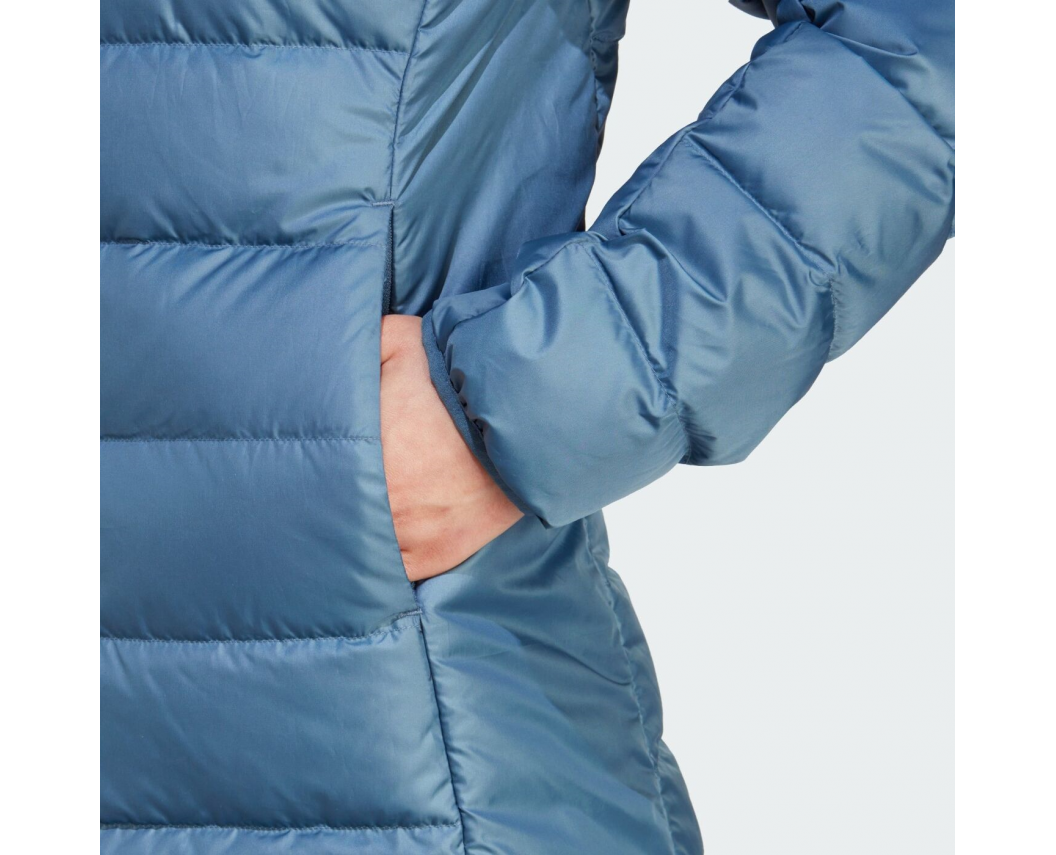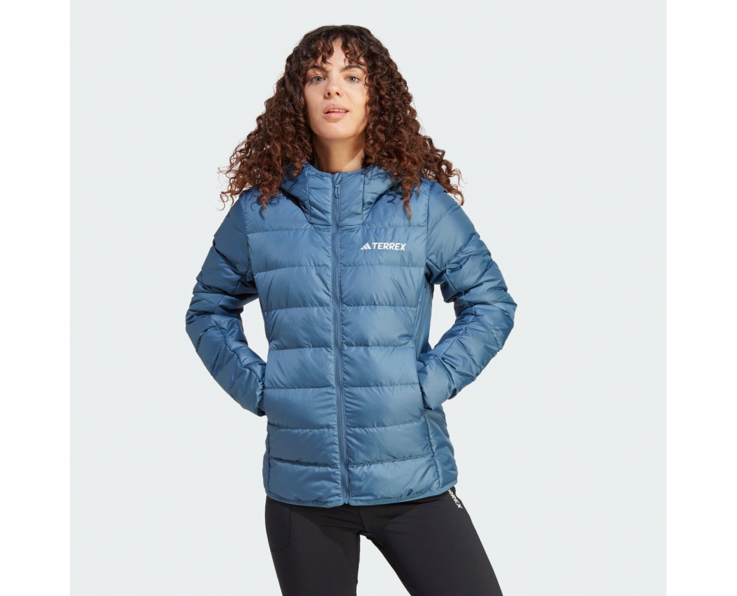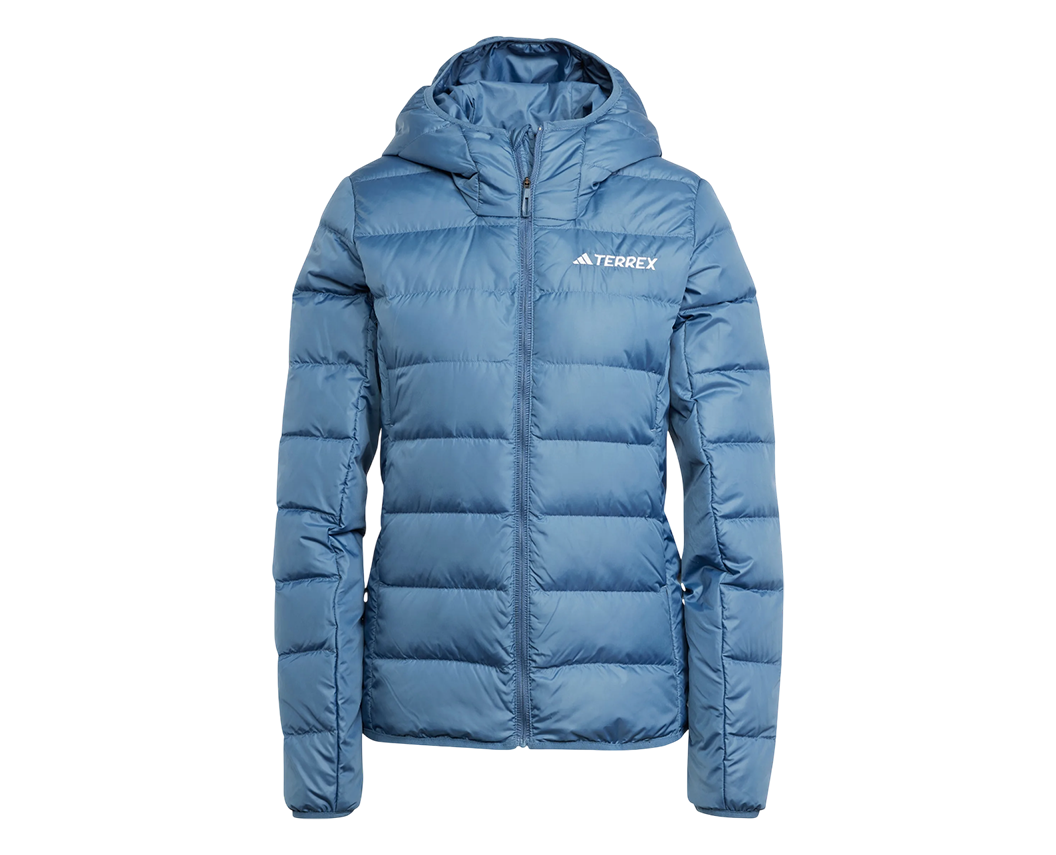 Дістань легку пухову куртку з капюшоном adidas Terrex Hybrid Down Jacket із рюкзака, коли досягнеш вершини, і насолоджуйся краєвидами без холоду.