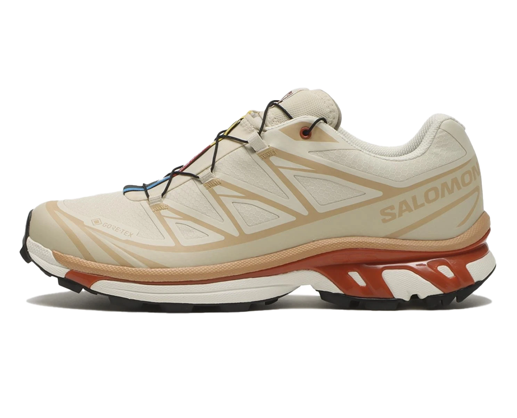 Salomon XT-6 Gore-Tex вирізняються серед лінійки XT-6 GTX поєднанням легендарних технологій для трейлу та міського стилю. Створені для тих, хто цінує функціональність і комфорт, ці бежеві кросівки готові до будь-яких умов — завдяки водостійкому покриттю Gore-Tex, яке захищає від вологи, куди б не привів твій день.